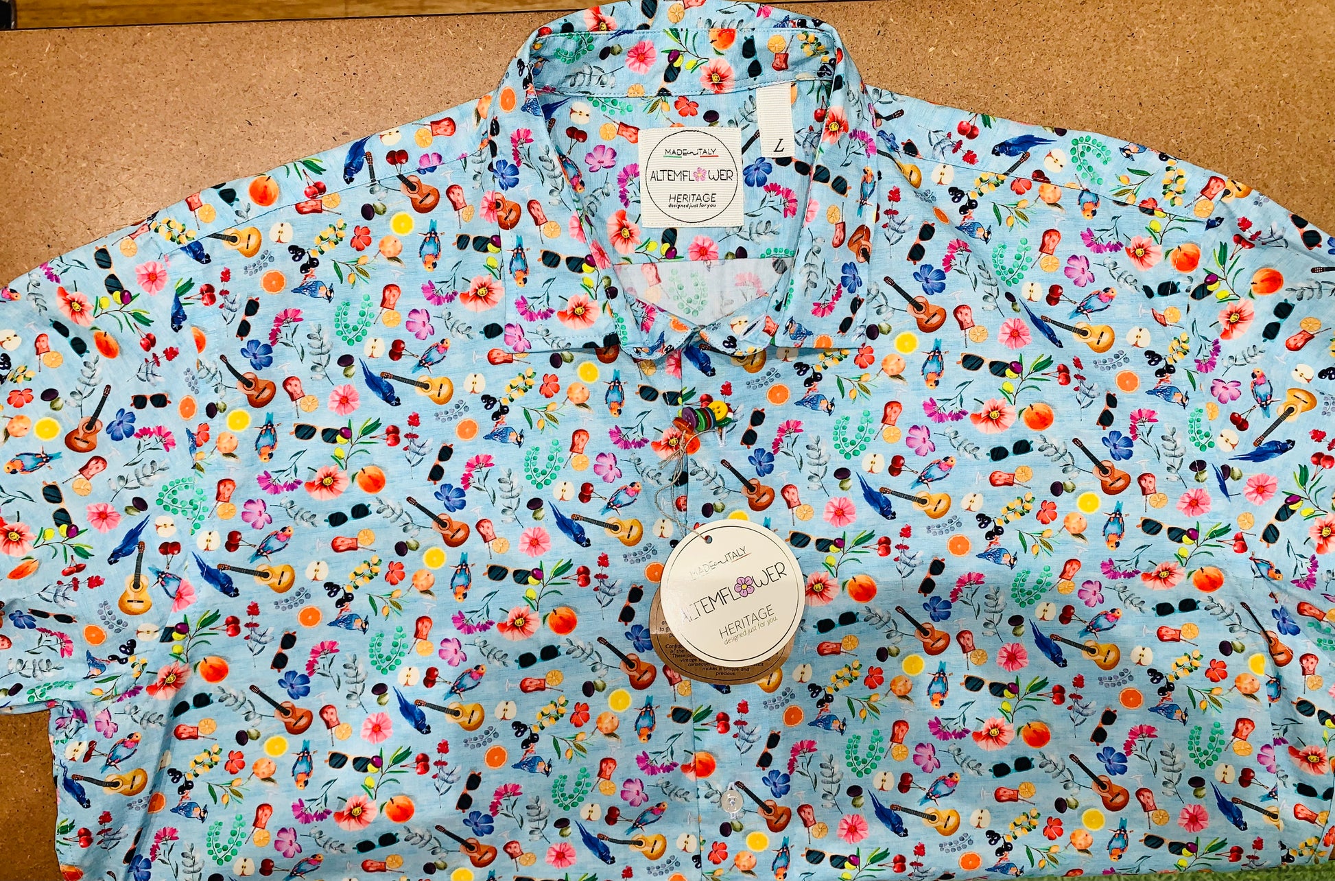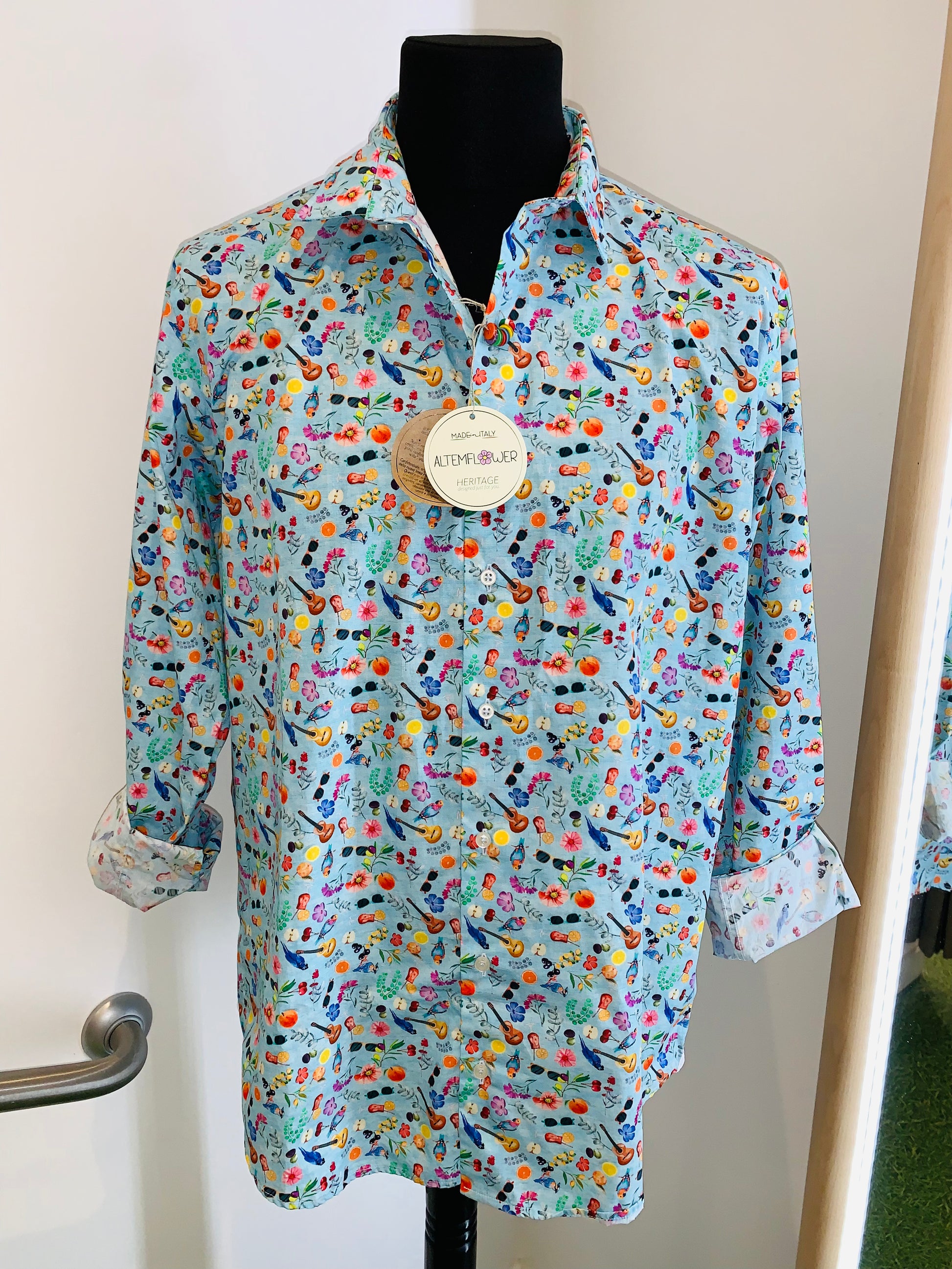 Chemise de la marque italienne 🇮🇹 Altemflower, fabriquĂ©e en Italie, 100 % coton, coupe lĂ©gèrement ajustĂ©eÂ